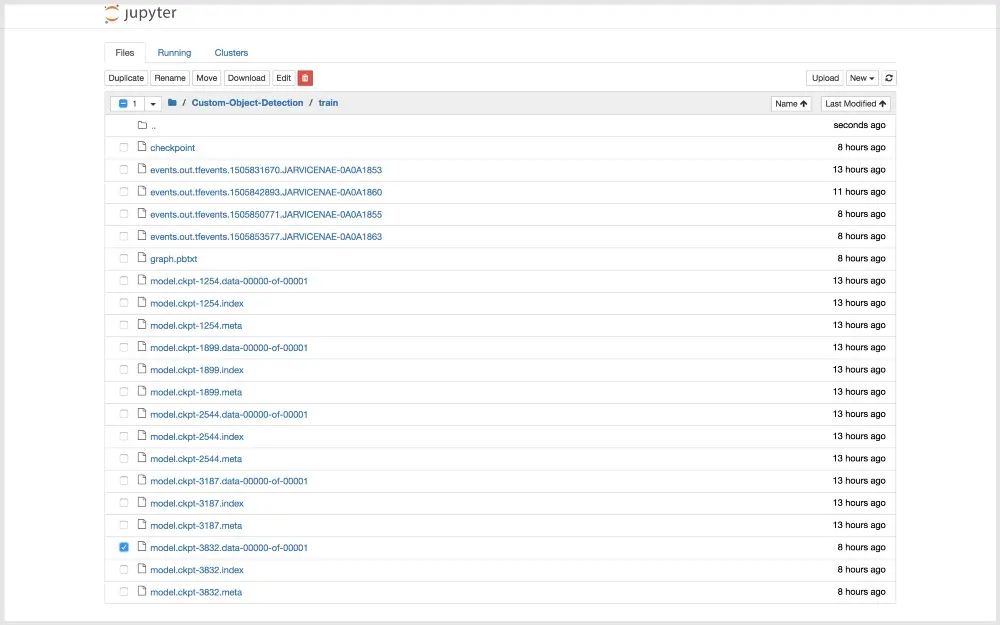 点击左上角的 Jupyter 的 logo,然后导航文件树至 Custom-Object-Detection/train。