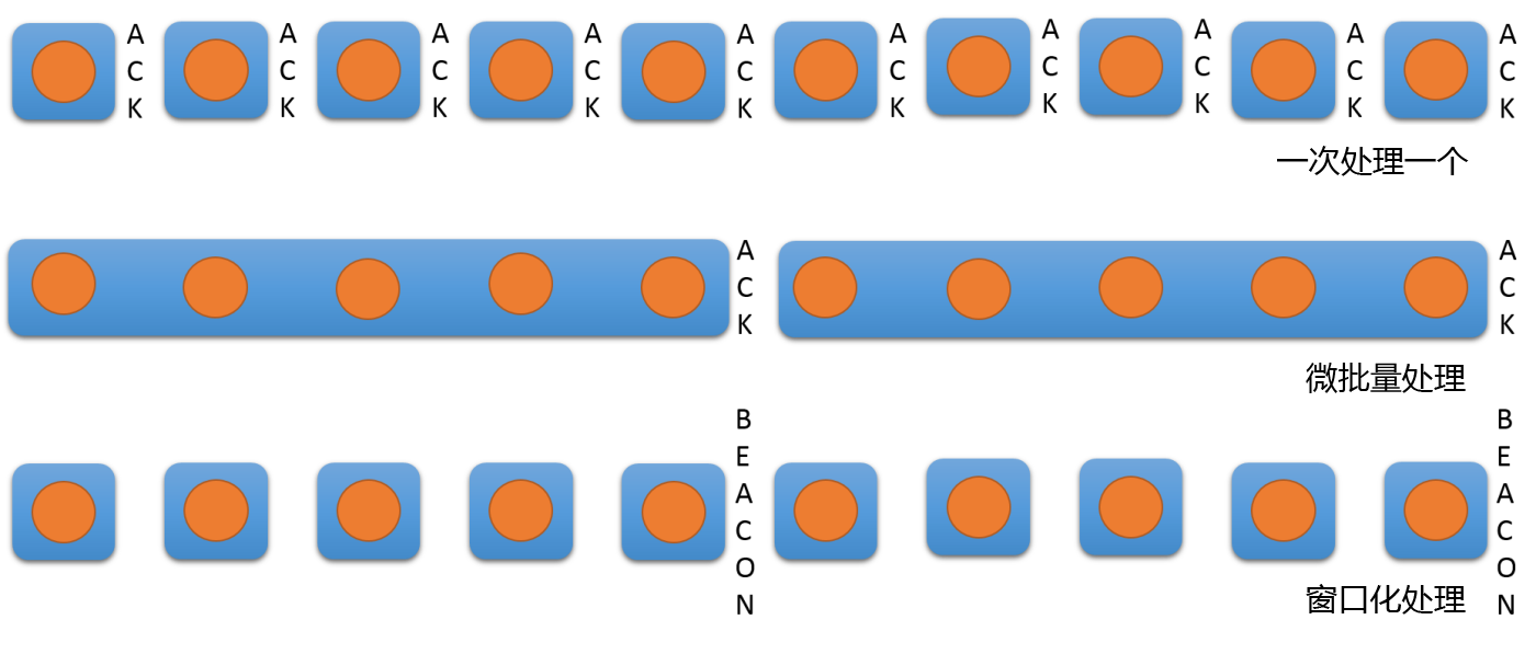 原子级处理:(也就是一次处理一个元组)将每个传入数据事件作为一个单独的元素处理。这是最简单明了的,但也是计算量最高的设计。它能用于确保以最少的延迟将事件传送给用户,以此来达成对个别事件的最快处理。这一处理模式也会经常查看用户输入的事务,以便在对事件块的某些元素的处理失败的时候,不用把整个块删掉,将其移至一个错误记录文件中,以后再去处理即可。Apache Storm 用的就是这种模式。
