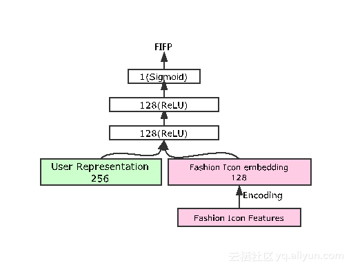 任务三是用户对达人的偏好。因为这里希望最终学习到的用户表达比较通用,而不是所有的任务都和商品相关,如此学习到的用户个性较为局限。因此任务三主要学习用户喜爱的达人类型。此处任务三的输入除了256位的用户表达外,还需输入相关达人的特征,然后解决用户是否会follow的二次类问题。