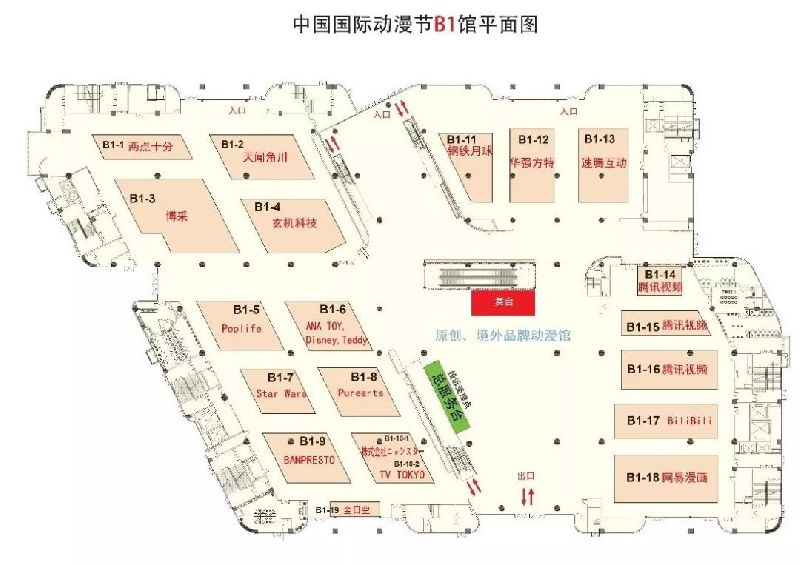 - 展物:这一层楼有腾讯视频、Bilibili、网易漫画、玄机科技、博采传媒、华强方特、天闻角川、两点十分、banpresto、东京电视台等国内外知名动漫企业。喜欢《秦时明月》、《19天》、《SQ从你的名字开始》、《星球大战》等作品可以选择这里!同时,蔡志忠、朱德庸、夏达等漫画家也将在这一层楼的主舞台区域进行名家签售