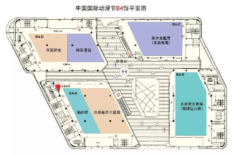 - 展物:B4馆有四个独立展厅,分别是网易游戏、网易漫画,积木主题展(乐高教育),浙报集团主题展、漫阅吧以及儿童复古赛车(萌骑拉力赛)。B4馆除了主题展,还有一个看点,这里可以说是整个动漫节主会场COSER最集中的地方了。在B4馆露台区域,你可以各种抓住COSER小哥哥小姐姐们合影留念哦!
