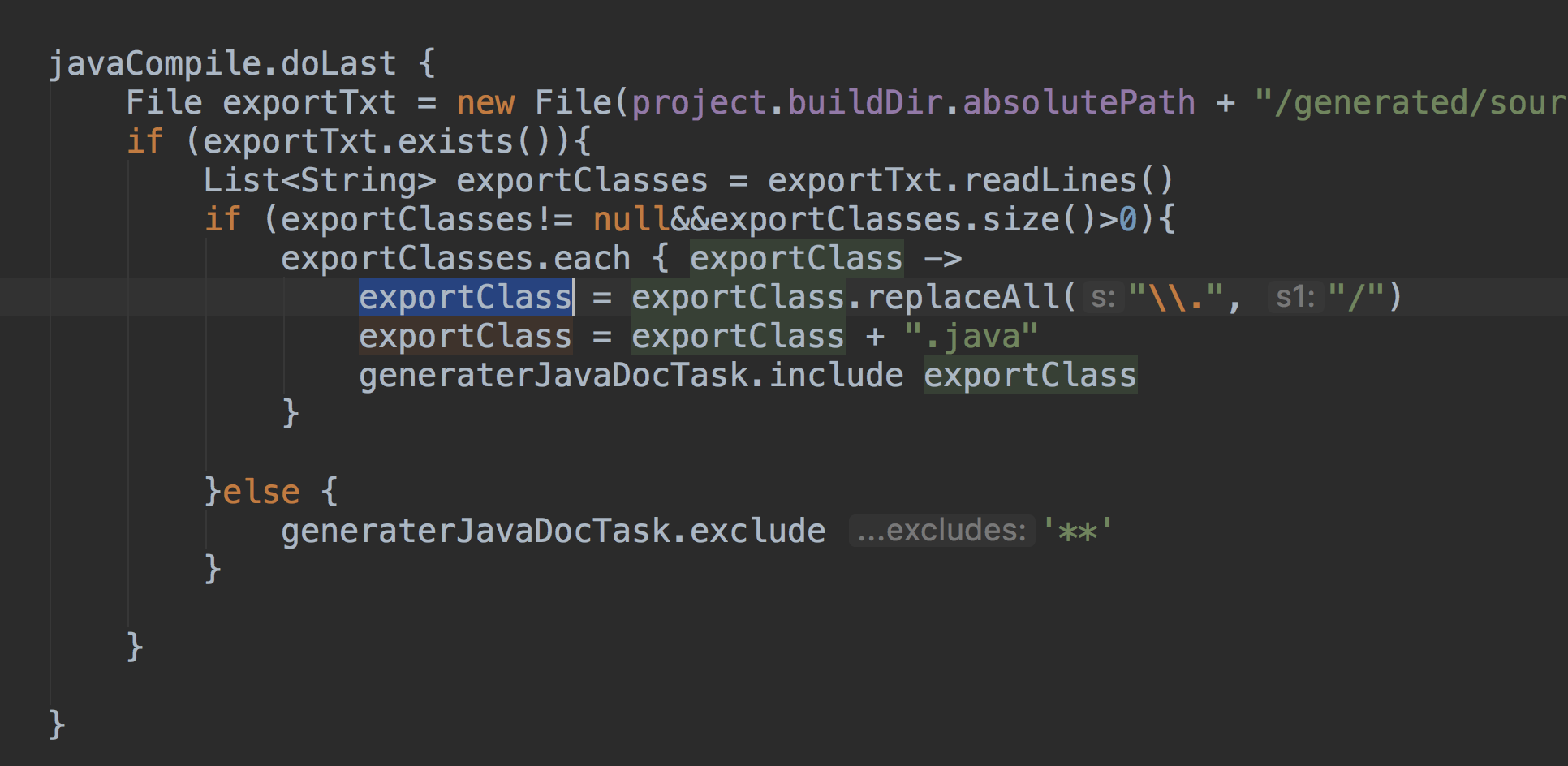 javadoc任务指定需要导出的java文件生成文档放入我们的文档中心