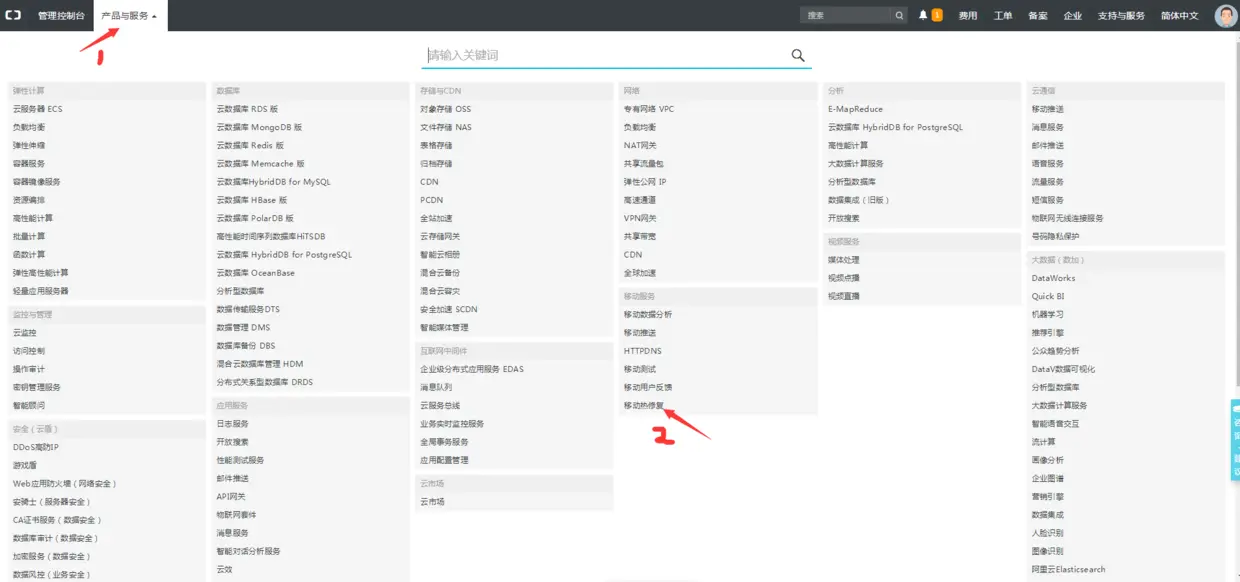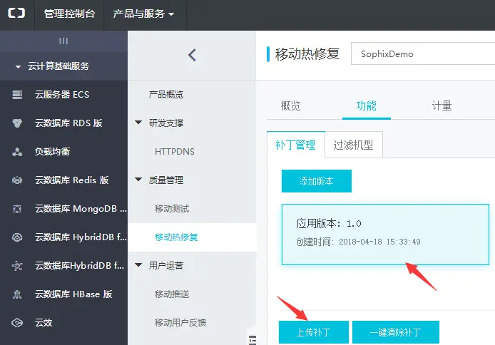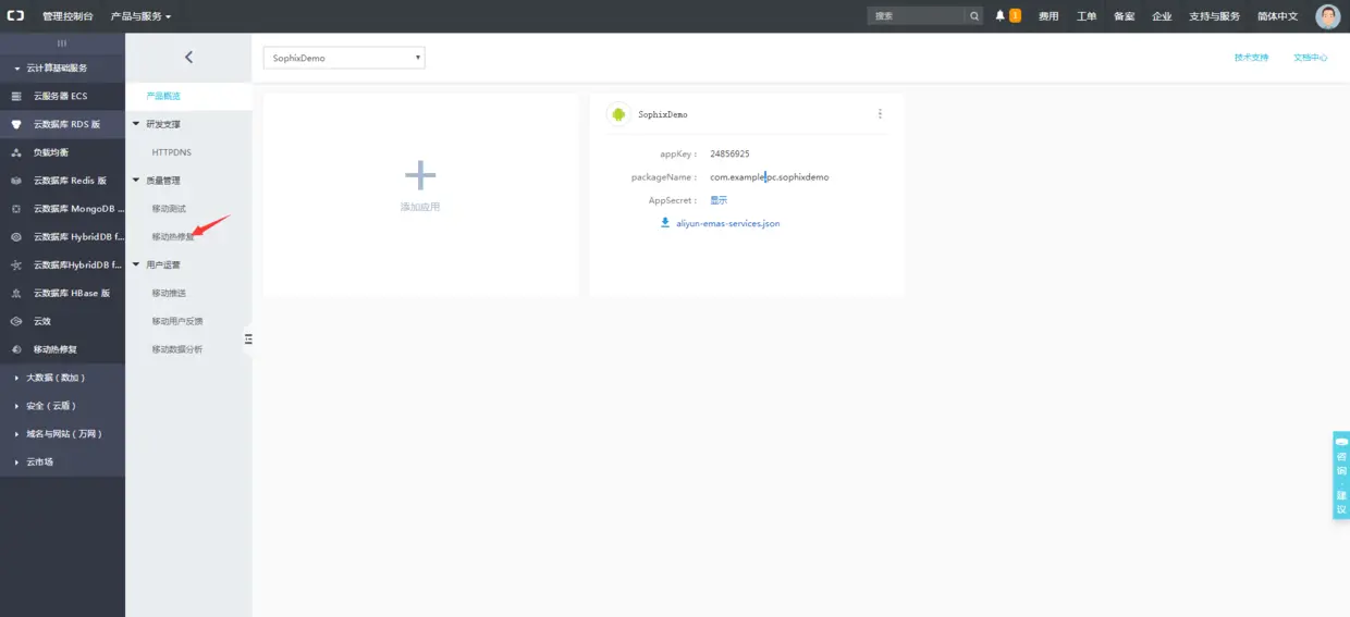 1.注册账号开通服务 注册就不说了,注册完在产品中找到移动热修复,首次使用要开通服务。