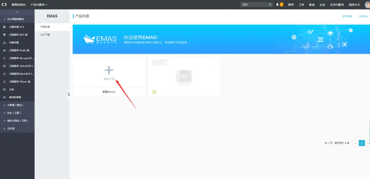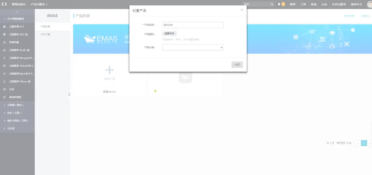 开通服务后,点击添加产品,输入产品名称。