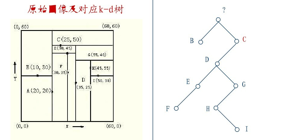 /*第一步:在kd树中找出包含目标点的叶子结点:从根结点出发,