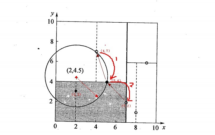 (a)如果该结点保存的实例比当前最近点距离目标点更近,则以该例点为“当前最近点”