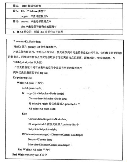 现实生活中有许多问题需要在多维数据的快速分析和快速搜索,对于这个问题最常用的方法是所谓的kd树。在k-d树中进行数据的查找也是特征匹配的重要环节,其目的是检索在k-d树中与查询点距离最近的数据点。在一个N维的笛卡儿空间在两个点之间的距离是由下述公式确定: