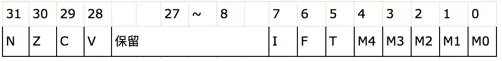 CPSR的第31位是 N,符号标志位。它记录相关指令执行后,其结果是否为负.如果为负 N = 1,如果是非负数 N = 0.