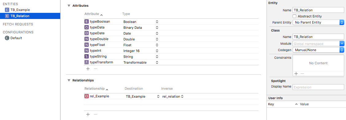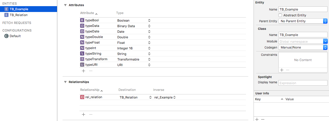 NSEntityDescription *entity = [NSEntityDescription entityForName:@"TB_Example" inManagedObjectContext:context];