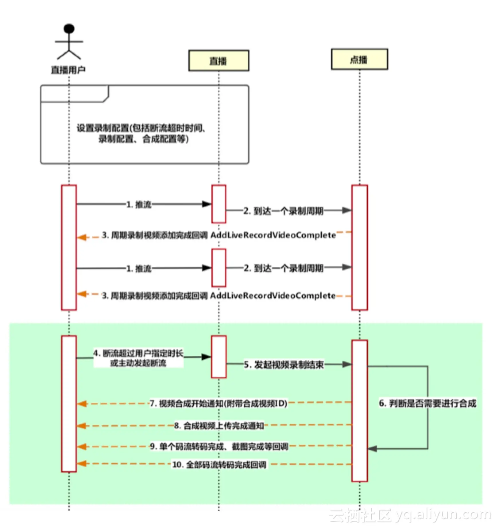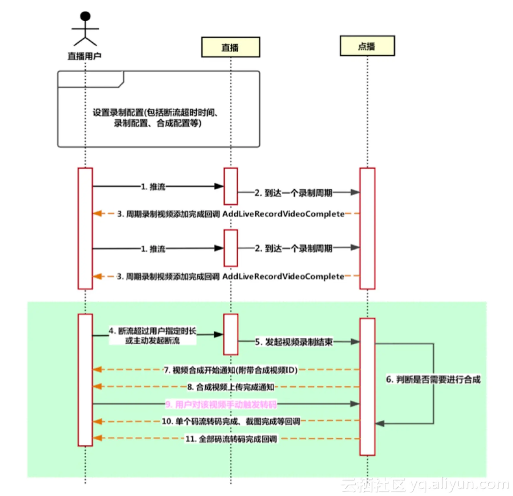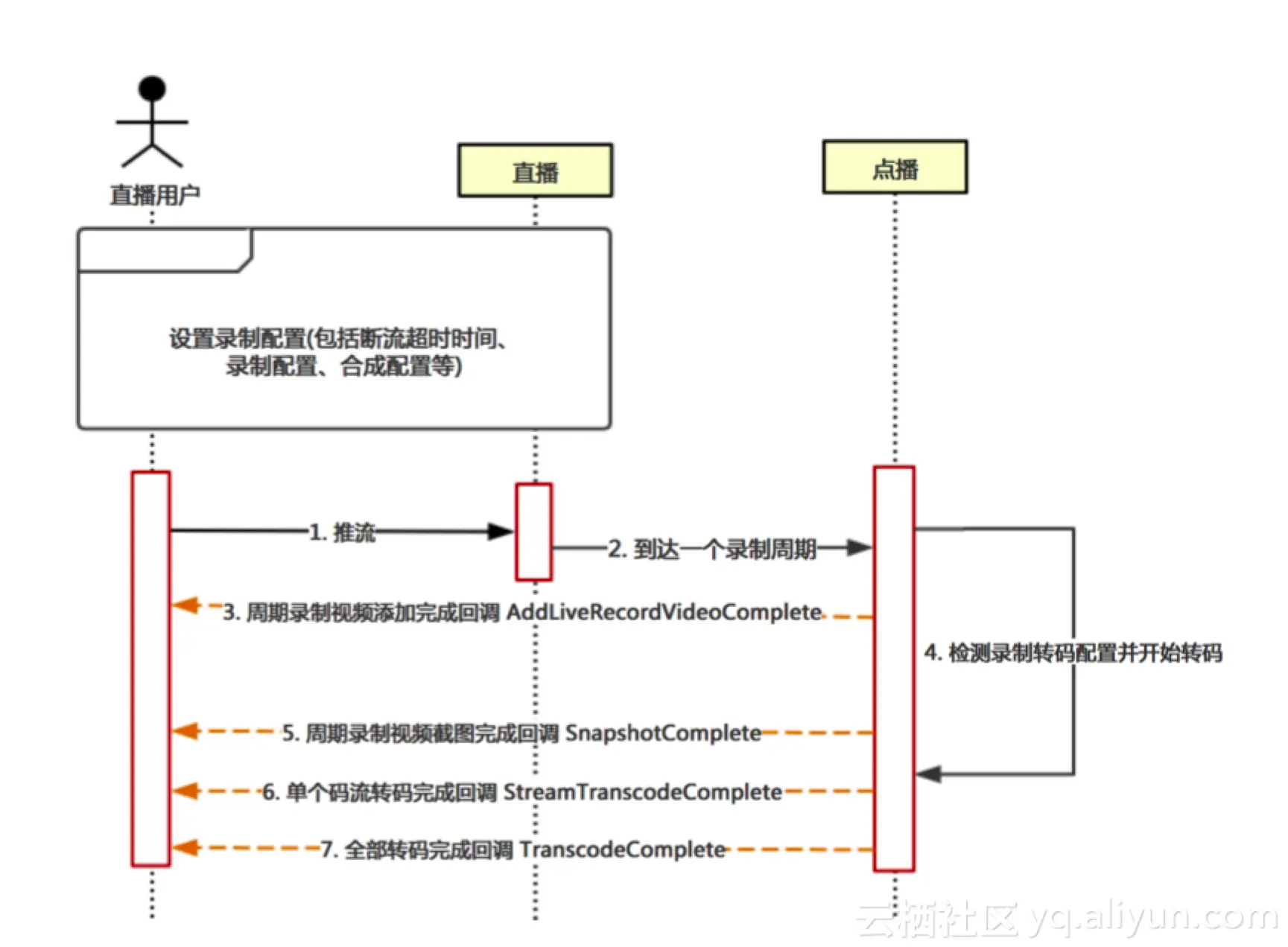 3.点播记录完成后,会生成点播系统的唯一视频ID,并将该视频信息回调给用户,即 AddLiveRecordVideoComplete通知,并附带直播相关的DomainName、AppName、StreamName信息。客户收到回调后,需记录该视频信息,并以该VideoId作为索引进行后续视频状态更新