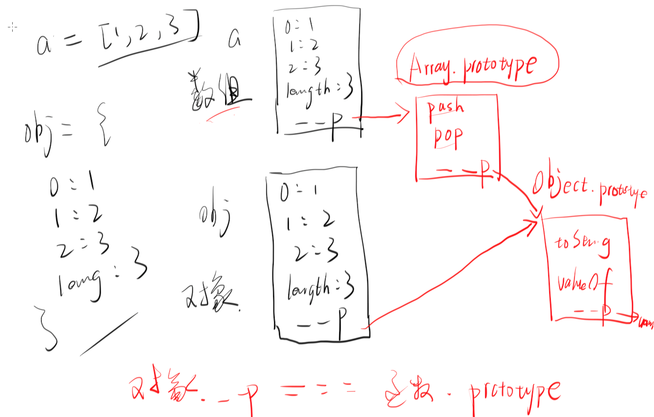 数组构造的对象与obj构造的对象 指向的共用属性不同 (原型链不同)