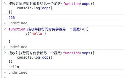在执行时候 接收到了y('hello')中的'hello参数' 然后打印出这个参数 这个函数接收一个函数 接受的这个函数必须接受一个参数这个参数的值 要看另外一个函数的源代码才知道