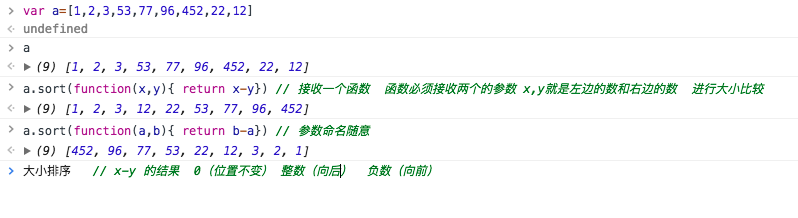 a.sort(函数(参数1,参数2){参数1-参数2})