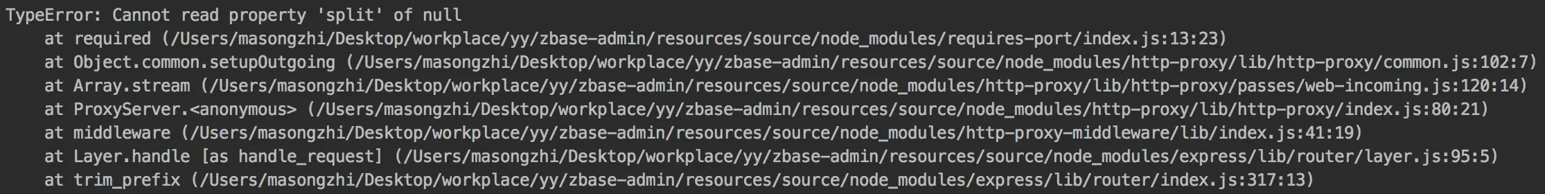 requires-port, 调用该包的库是http-proxy-middleware, 看到该包版本为0.17.3,就想着是不是版本太低的 bug,逐使用npm update | grep http-proxy-middleware,发现最新也就0.17.4,基本可排除版本问题。 - 那就看该库哪里报错吧,根据提示找到