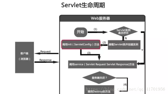 ③响应阶段,响应客户端的请求,调用service()方法。由service()方法根据提交方式选择性执行doGet()方法或者doPost()方法。
