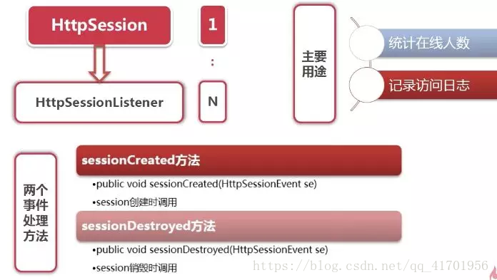 这三个监听事件,分别实现对应的接口,也就是图示的1..N。既然实现了接口,即必然要实现其对应的方法,如图所示。主要用途也如图所示。