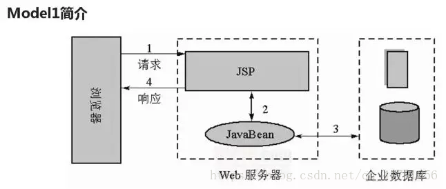 Model1是最早的能体现分层思想的一种开发模式,简单来说Model1就是一种Jsp+JavaBean的一种开发模式。