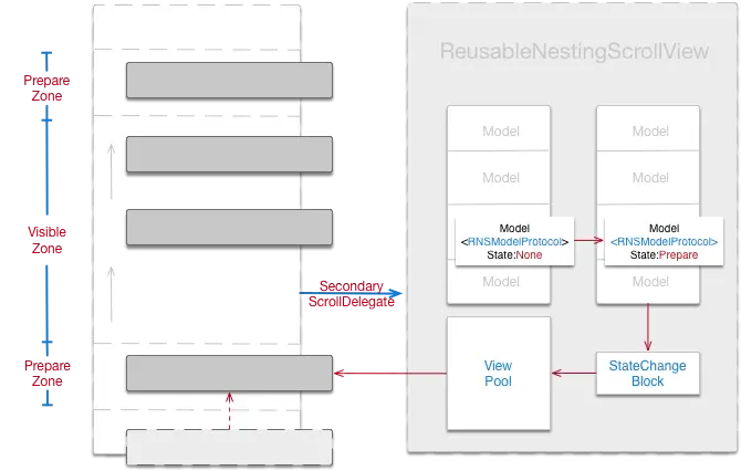 综上,通过ReusableNestingScrollview只需将模块对应Model扩展增加协议,滚动视图扩展Delegate,就可实现任何滚动视图中子View的回收复用功能。