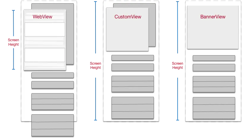 为了实现内容页扩展区的灵活复用,在HybridPageKit中也扩展了非WebView类型的内容页。就像文中之前提到的,如果将WebView看做一个整体作为一个组件,基于ReusableNestingScrollview的位置动态管理,完全可以替换成普通的View(类似Banner视频内容页),或者可扩展收起的View(问题回答页面)甚至tableView等。所以整个App内各种类型的内容页只需要简单的配置,便可进行实现和组件复用。