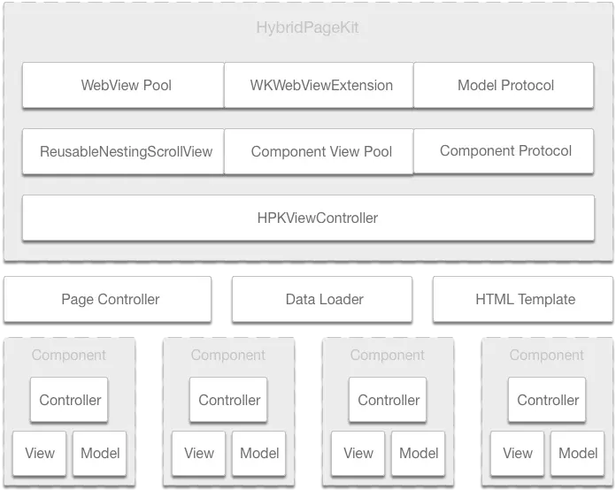 结合ReusableNestingScrollview、WKWebViewExtension以及组件化的设计思路,HybridPageKit整体的架构如下: