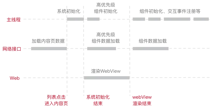 综上,从一个内容页在列表上的点击,到WebView渲染结束,最后到用户的滚动操作,按照时间的顺序,全部的优化策略如下图:
