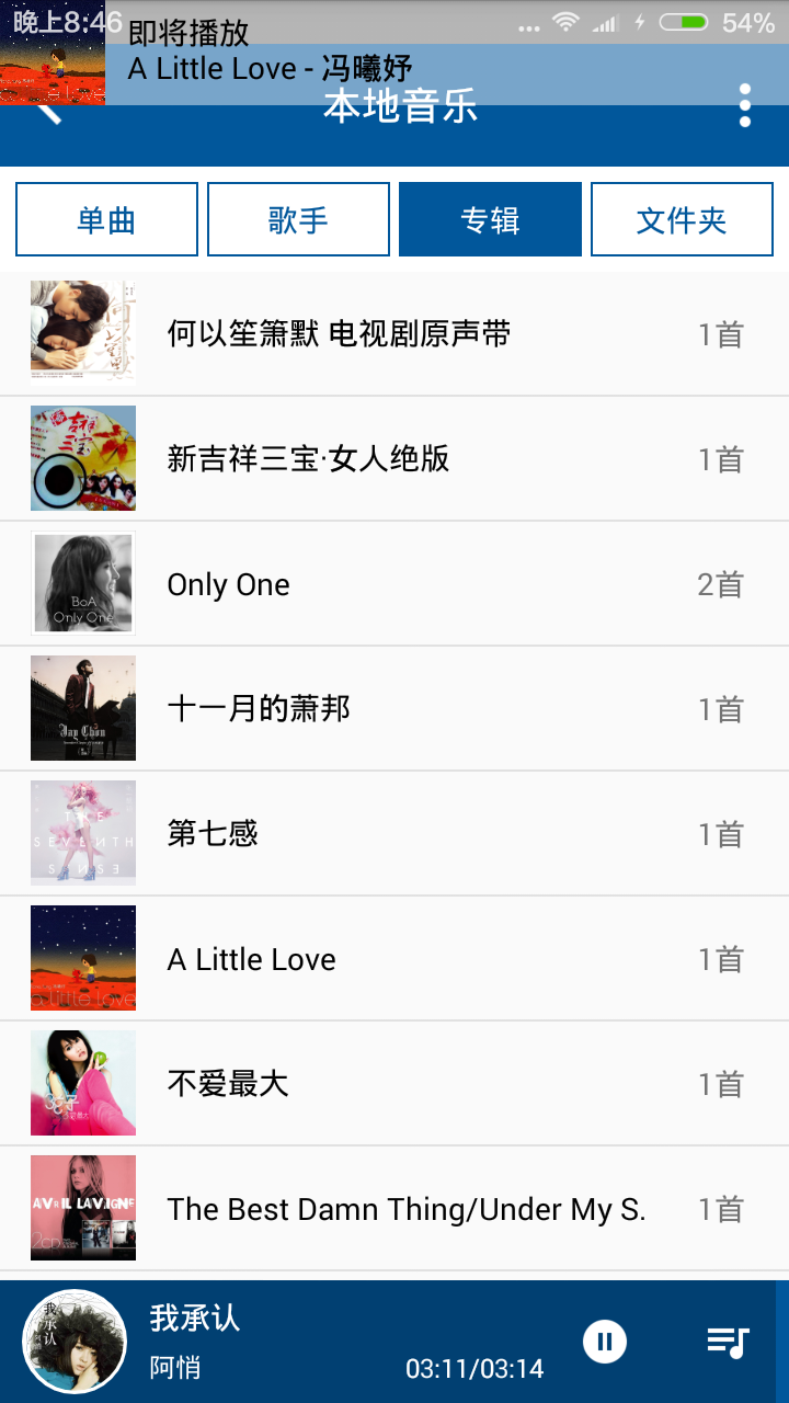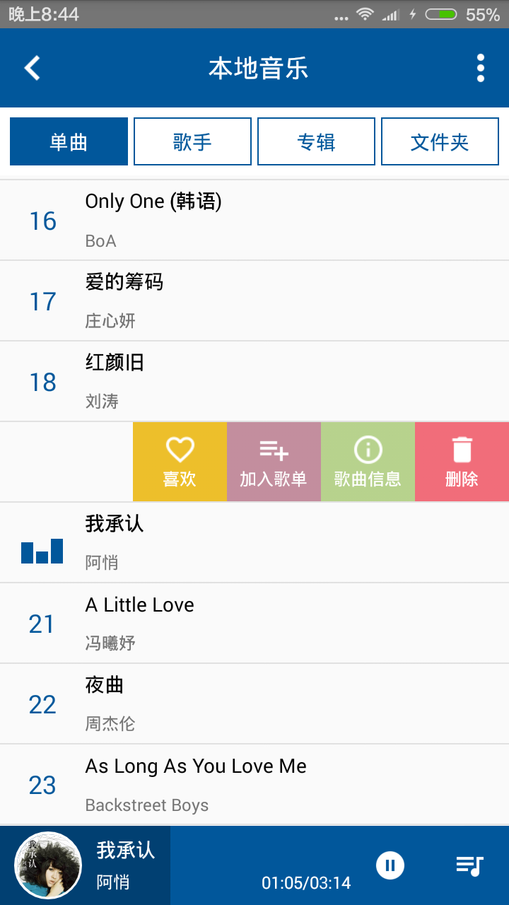 - 支持本地乐库分类:单曲、歌手、专辑、文件夹