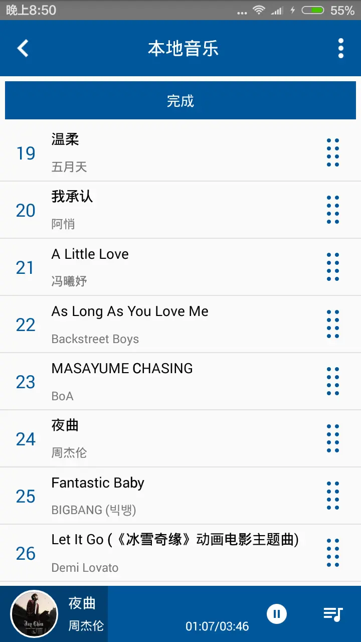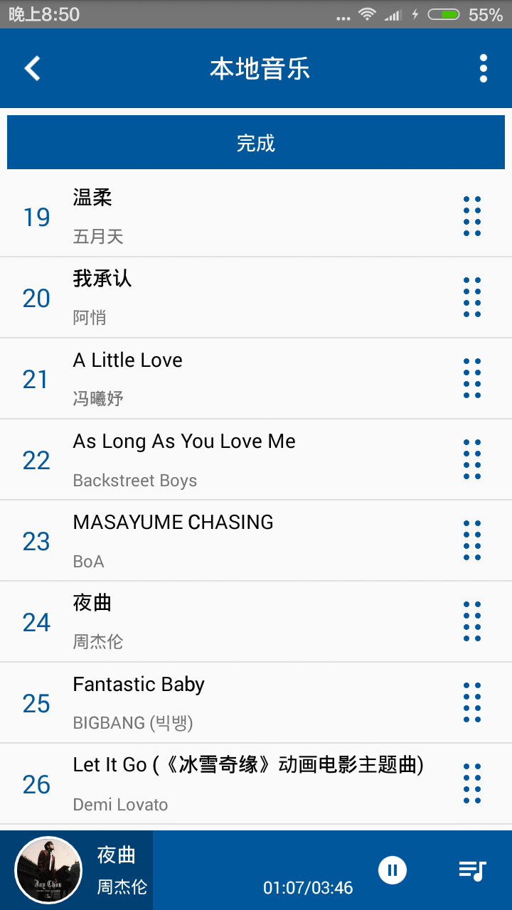 - 支持自定义排序本地歌曲(个人习惯把常听的歌曲放一起,不喜欢按字母排序,也是开发此应用的原因)