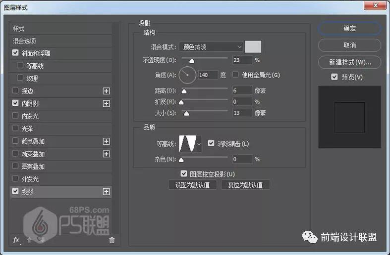 设置内阴影: