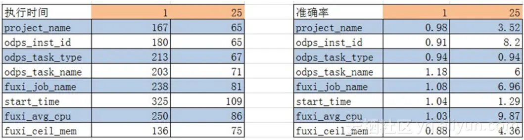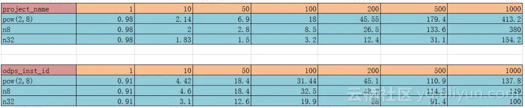 针对表meta.m_fuxi_instance表中的列project_name,odps_inst_id做了些测试,结果如上。看起来1/50的结果还是可以接受的。