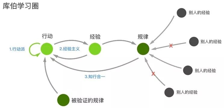 美国心理学家、体验式学习大师大卫·库伯(David Kolb)认为,不能用经验指导行动,应该从行动中归纳出经验,把经验升华为规律,再用规律指导行动。这就是他提出的库伯学习圈 ,我们同样可以用这种方式来学习和总结交互设计中的规律。