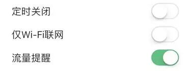 看到了吧?上图中的「定时关闭」、「仅 WiFi 联网」和「流量提醒」就是和刚刚的 WiFi 开关同样的功能开关式的 IMU。
