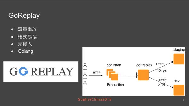 GoReplay 作为一个 Proxy,可以旁路流量到你的 staging 或开发测试环境中。