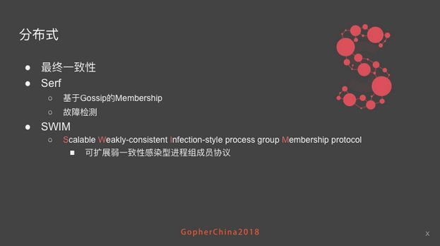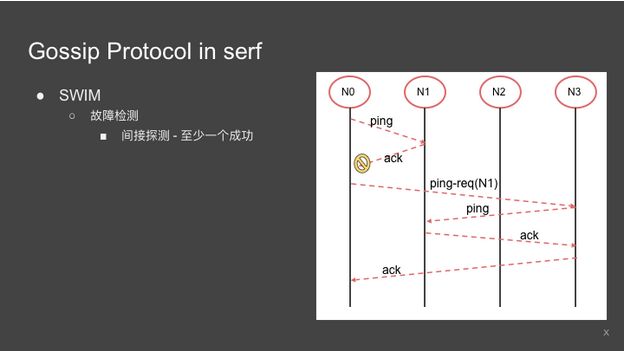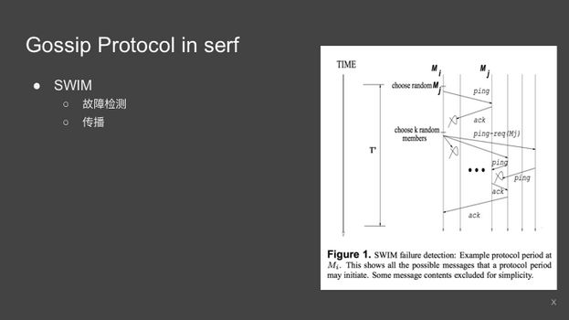 另外是 Weakly,我不是强一致性,我是弱一致性的保证,某一时刻不同结点看到不同系统的状态,但是一定时间内,刚才说的一致性是有时间窗口的,serf是大概一秒钟之内就可以收敛到一致状态。