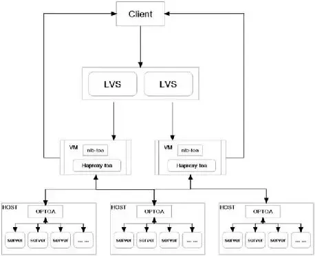 有时候需要更加复杂的4层和7层负载均衡,则会在LVS后面加上haproxy集群,也即将LVS导入的流量,分发到一大批haproxy上,这些haproxy可以根据不同的应用或者租户进行隔离,每个租户独享单独的haproxy,但是所有的租户共享LVS集群。