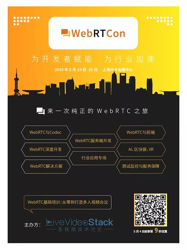 继2017年第一届LiveVideoStackCon音视频技术大会之后,LiveVideoStack又一次出发——WebRTCon 2018,将于5月在上海举行,这是一次对过去几年WebRTC技术实践与应用落地的总结。