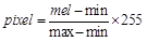 由于梅尔倒频谱输出的是向量,还不能用图片显示,需要将其转换成图像矩阵。需要将输出向量的范围 线性变换到图像的范围