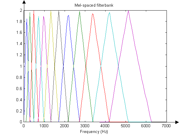 让我们观察一下从Hz到梅尔频率(Mel)的映射图,由于它们是Log的关系,当频率较小时,梅尔频率随Hz变化较快;当频率很大时,梅尔频率的上升很缓慢,曲线的斜率很小。这说明了人耳对低频音调的感知较灵敏,在高频时人耳是很迟钝的,梅尔标度滤波器组启发于此。