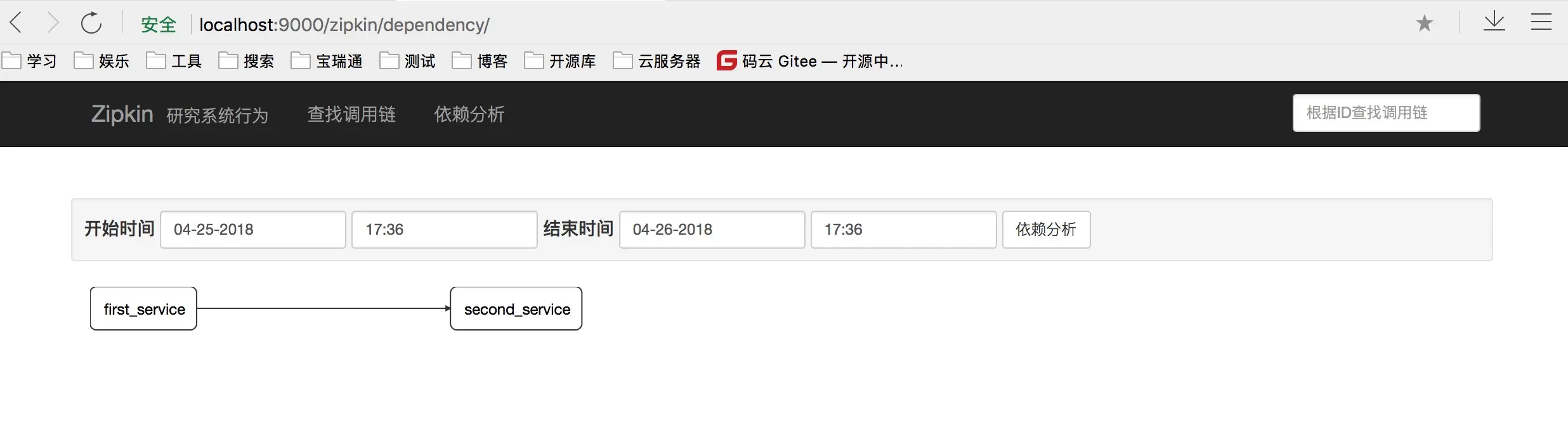 然后在浏览器访问http://localhost:9000/zipkin/dependency/,如下图