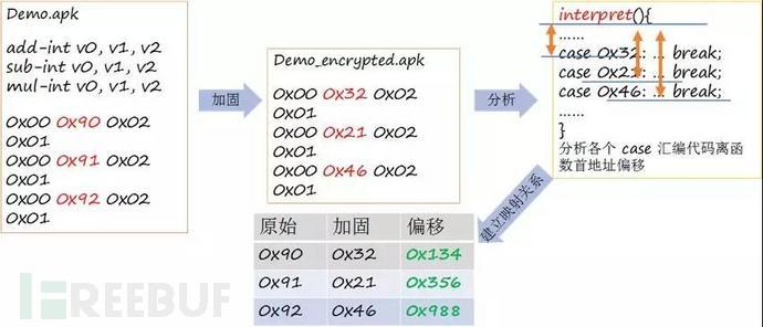 另一方面,也可以通过分析指令操作码映射来逆向分析。在同一加固版本,或者映射关系相同的情况下,可以采取以下所示的方法: