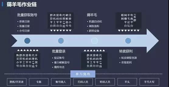 在解释这个之前,得先了解羊毛党时下都有什么新的作案工具和技术手法。下面是一张完整的薅羊毛作业链。