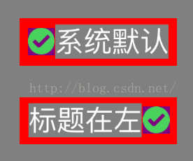 在设置偏移量的时候,误差还是有的,经过测试,最好的解决方式是,button的大小设置,要恰到好处能够容下标题和图片,对于追求完美的人,可自己修改偏移参数;