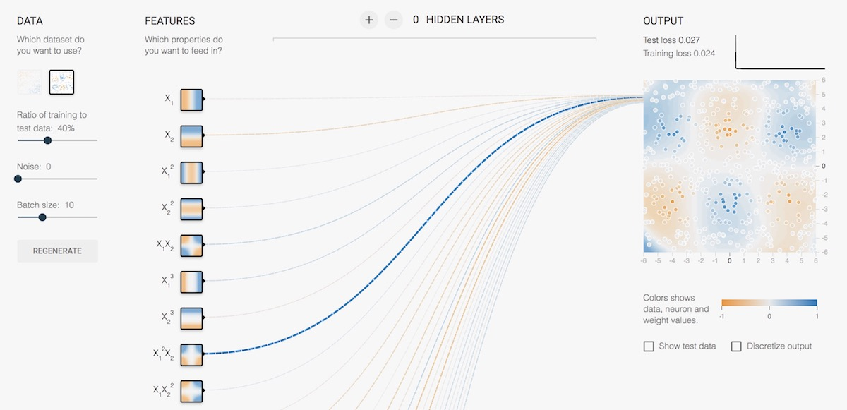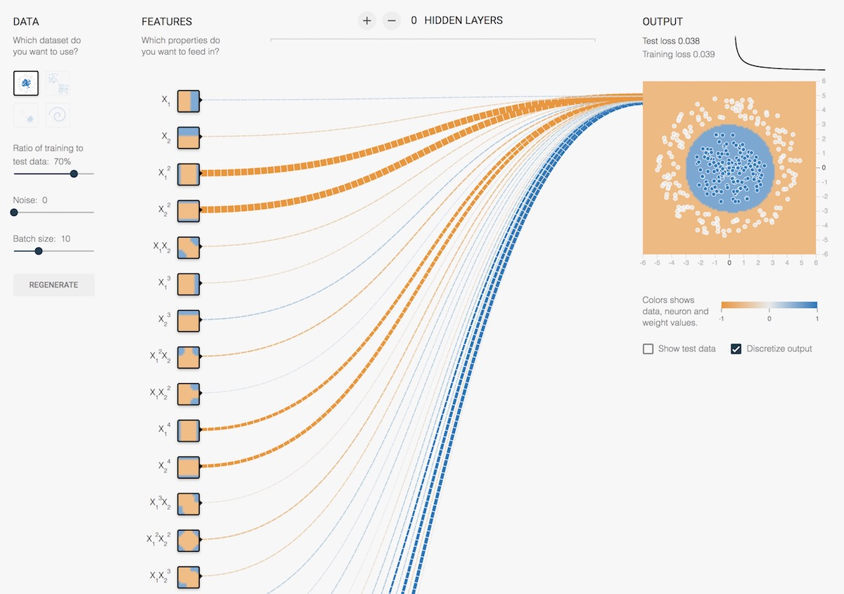 So~,我的玩法就是修改 TensorFlow Playground 来回顾 Ng 之前课程的内容,以下是玩法参考。有啥有意思的玩法也请留言告诉我哈 (●—●) ~