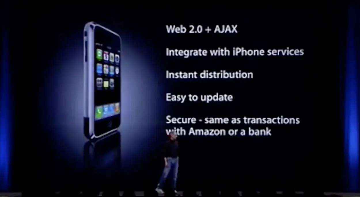 在07年WWDC上,Steve Jobs通过第一代iPhone发布了PWAs(当时不叫这个名字)