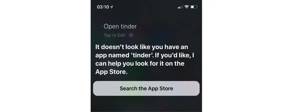 即使你安装了一个带有图标并且名字为 Tinder 的 PWA 应用,Siri 也不能找到它