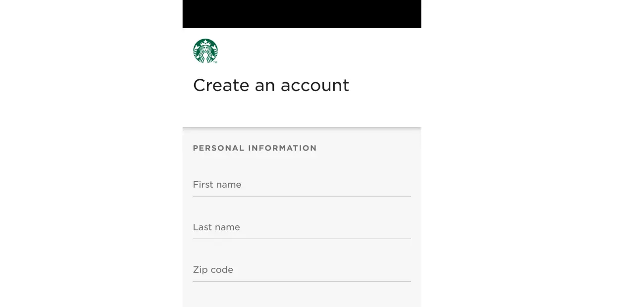 星巴克的 PWA 应用在点击“Sign up”之后不提供返回键,同时无法取消这次的选择,如果想返回就需要重新打开 PWA
