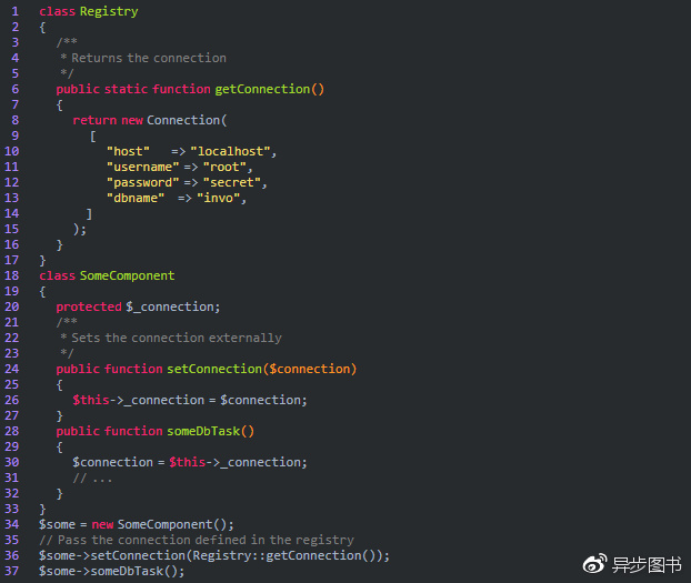 一个更好的办法是使用依赖注入容器。它就如同一个全局的注册表,像桥一样获取依赖项,并解耦。