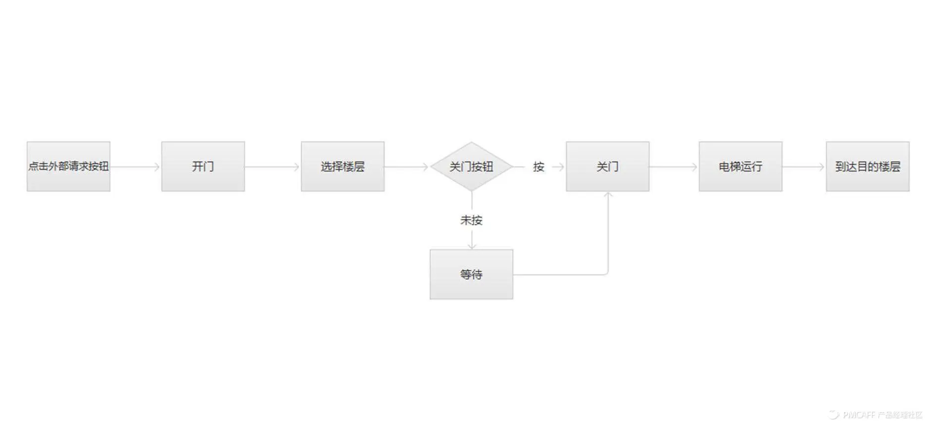 以上流程图是我们使用电梯过程中,最简单、最正常的流程,实际情况要复杂的多。在产品中有一个观点,异常流程远比正常流程要多。