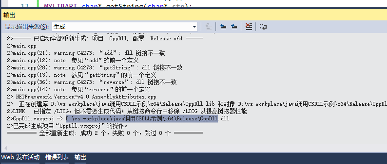 复制下dll生成文件全名,一会儿java里面用。