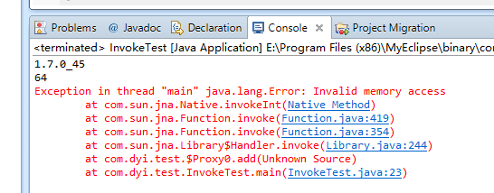 7.1.2 java报错:Exception in thread "main " java.lang.UnsatisfiedLinkError: Unable to load library 'D:\vs workplace\X86InvokeTest\Release\X86CPPDlls': Native library (win32-x86/D:\vs workplace\X86InvokeTest\Release\X86CPPDlls.dll) not found in resource path ([file:/G:/My%20Eclipse%20workplace/InvokeCSharpX86Test/bin/, file:/G:/My%20Eclipse%20workplace/InvokeCSharpX86Test/Lib/jna-4.4.0.jar, file:/G:/My%20Eclipse%20workplace/InvokeCSharpX86Test/Lib/jna-platform-4.4.0.jar])