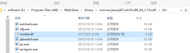 如图我们将Invoke.dll复制到jdk的bin目录下: